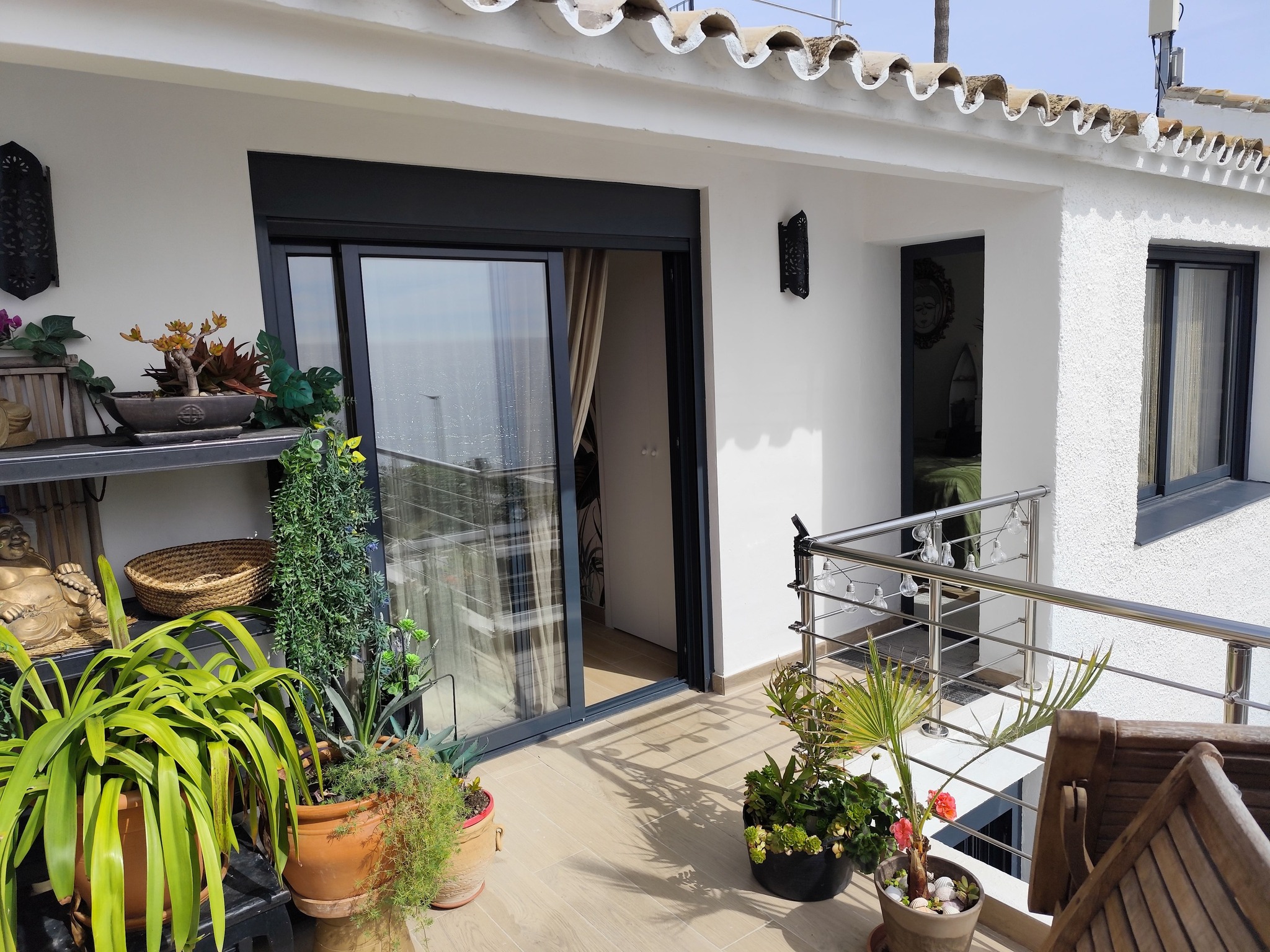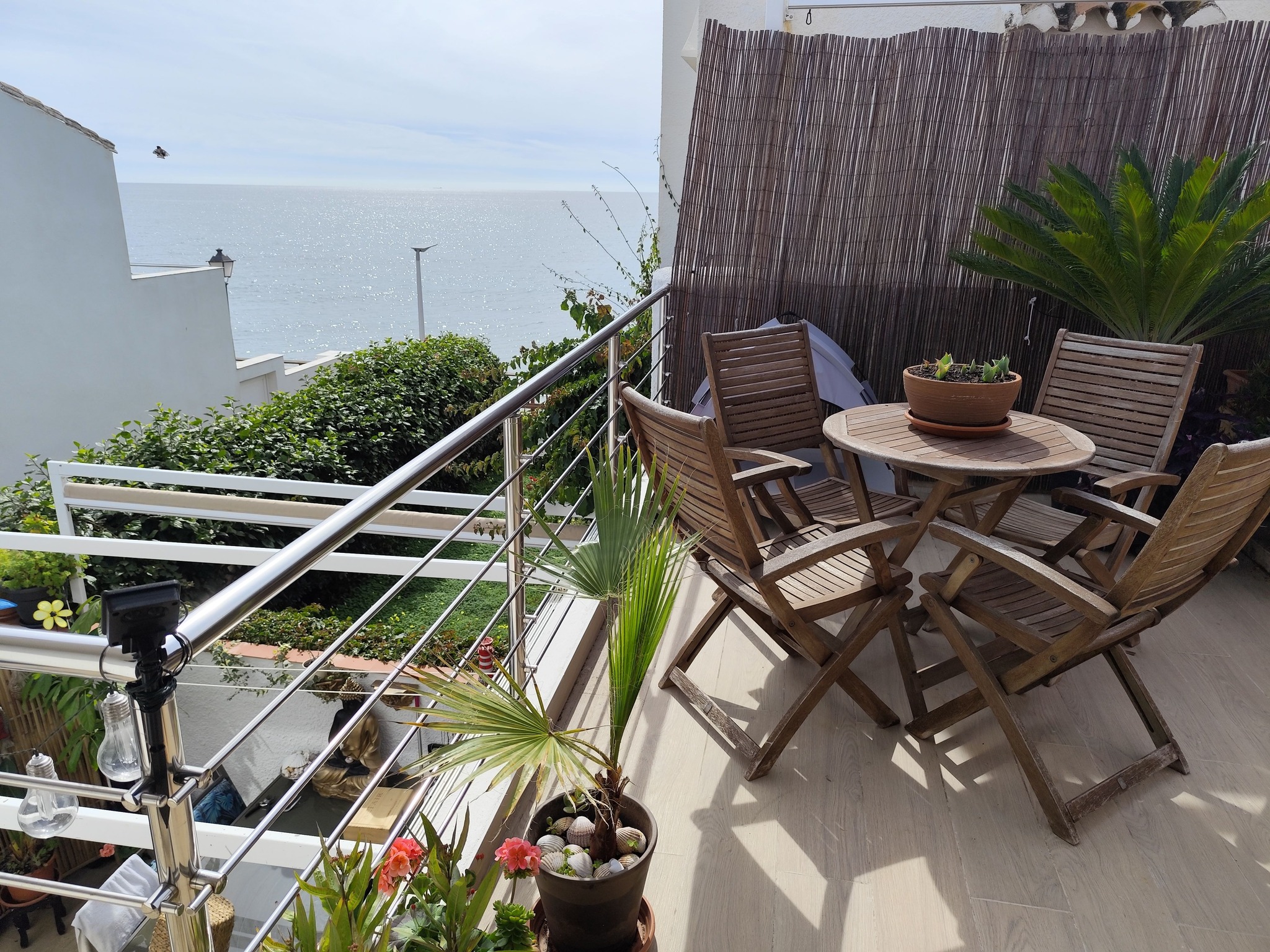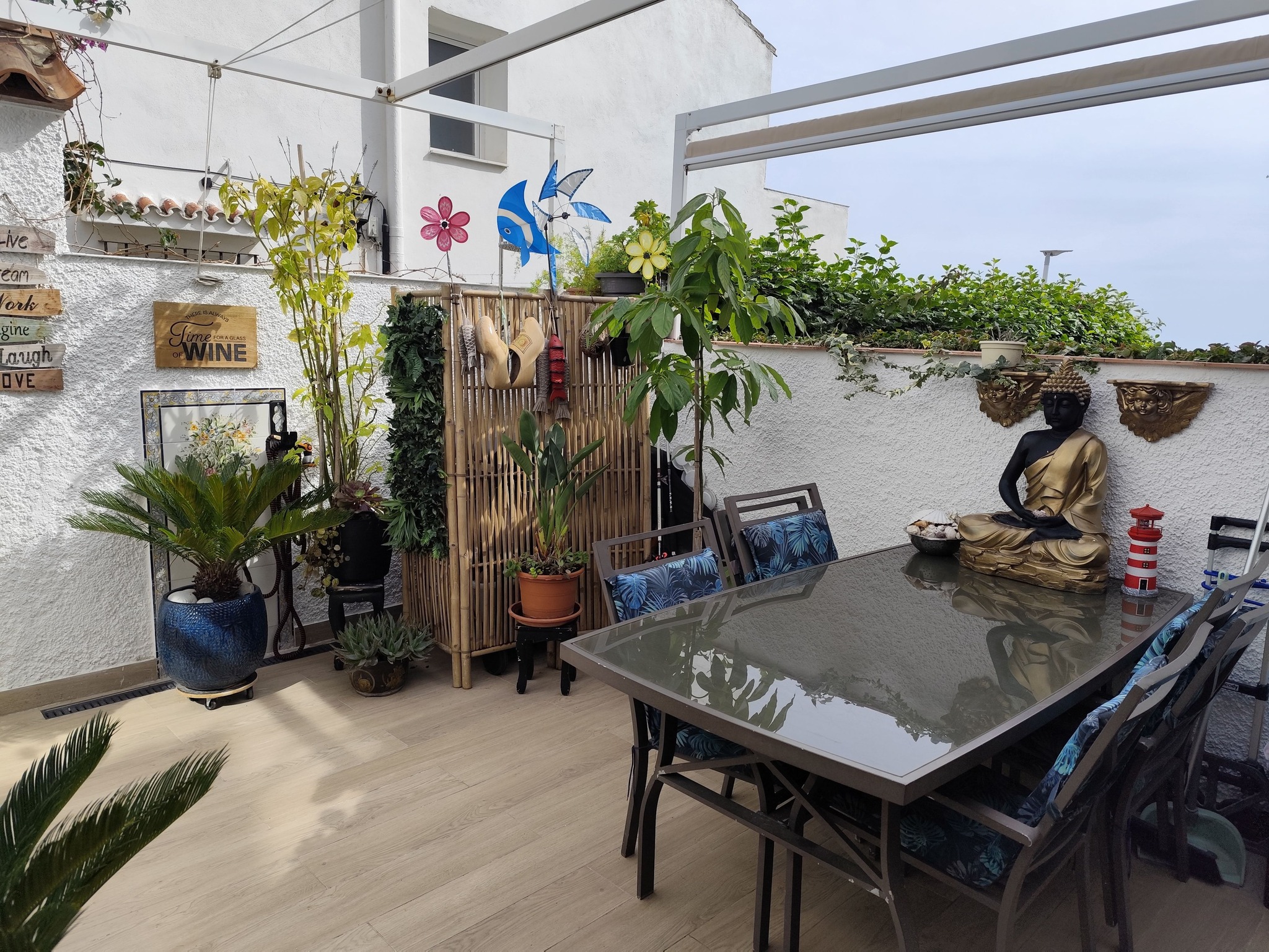 Fantástica casa adosada de 150 m² construidos, vivienda de tres dormitorios y tres baños, con impresionantes vistas al mar, una amplia terraza privada y a menos de 60 metros del mar.
