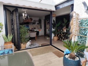 Puertas de terraza de armónica en la planta baja, vista abierta en todas partes.